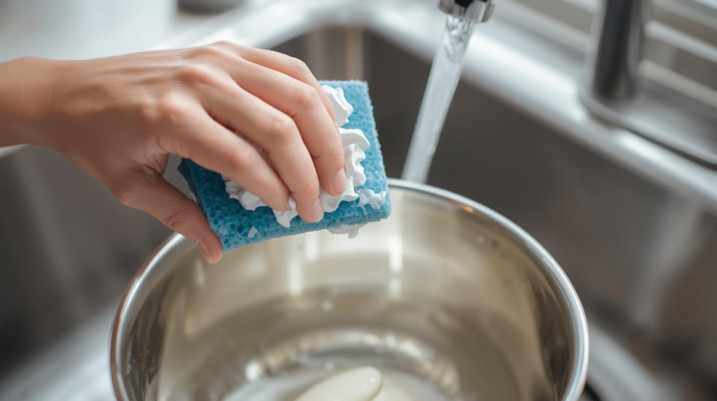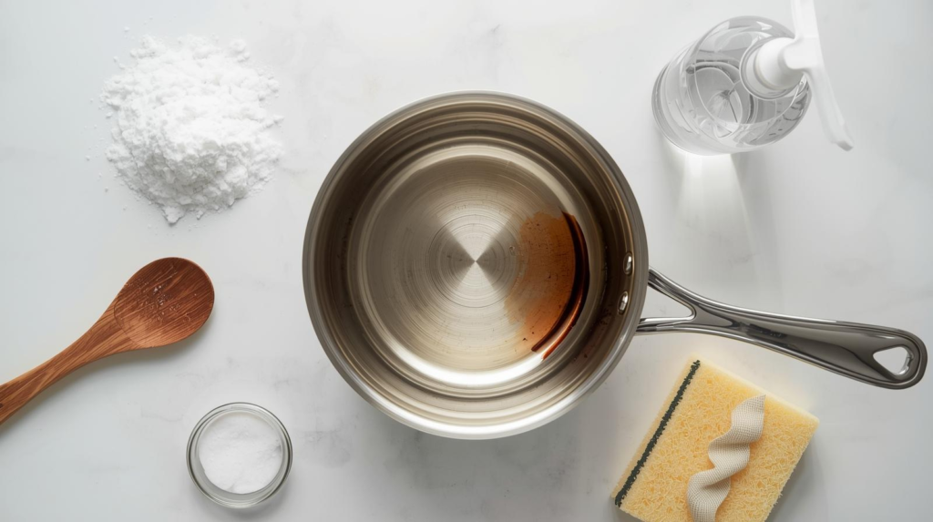 - Escalate to a baking soda paste or (for stainless/enamel) a vinegar + baking soda step if needed.