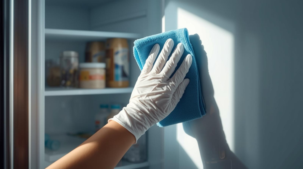 If you’ll be cleaning for more than a few minutes, move perishables into a cooler so they stay cold (CDC: keep fridge 40°F or below and use thermometers to verify) (CDC). If your fridge doesn’t display an exact temperature, use an appliance thermometer as advised by the FDA (U.S. Food and Drug Administration) and USDA FSIS (Food Safety and Inspection Service).