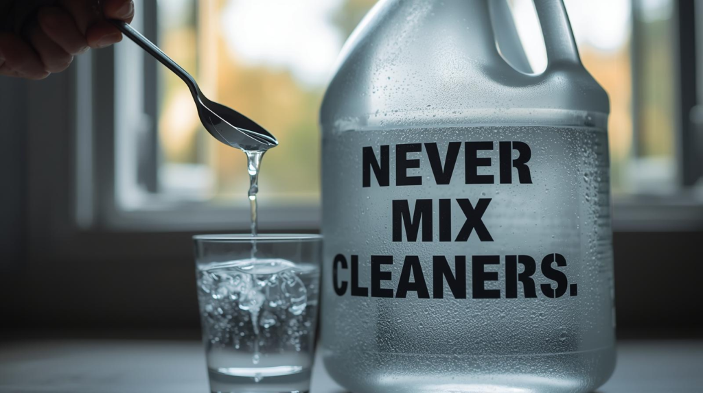 Safety warning: Never mix bleach with ammonia or acids (like vinegar) — official public health guidance warns this can release toxic gases (Washington State Department of Health).