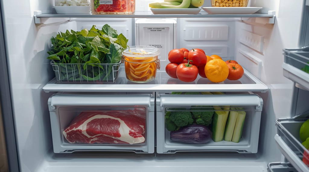 Store raw meat/poultry/seafood so it can’t drip: USDA recommends using containers/plates/sealed bags to prevent juices contaminating other foods (USDA), and a USDA food-safety article explicitly suggests placing raw meat on the bottom shelf so it won’t drip on ready-to-eat items (USDA).
