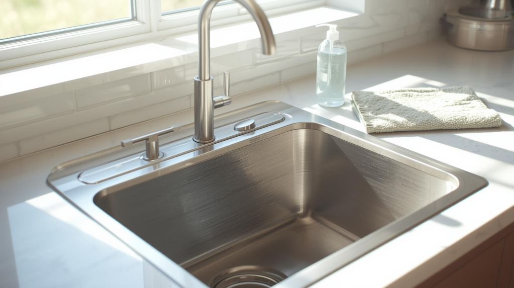 Stainless steel looks best when you clean gently, follow the grain, rinse well, and dry to prevent water spots and mineral buildup. That “clean → rinse → dry” routine is recommended by manufacturers like Franke’s stainless steel sink care instructions and Kohler’s stainless sink care tips.