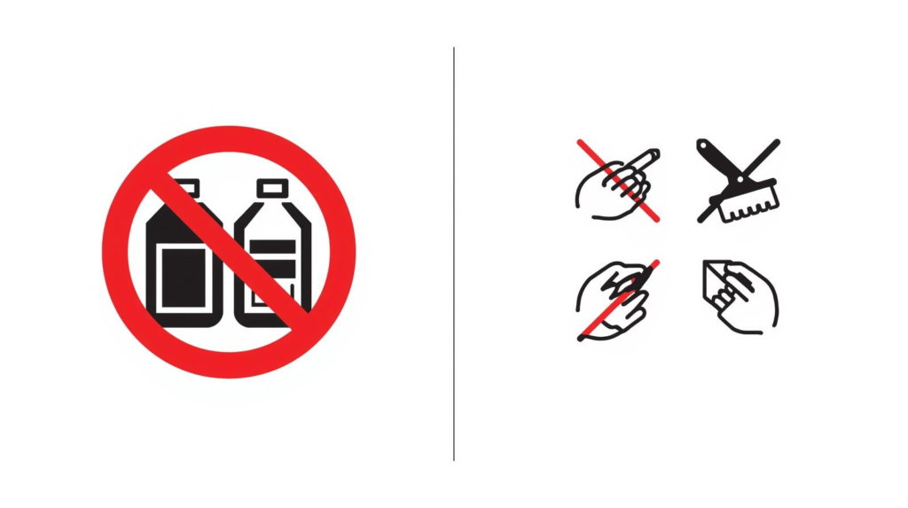 Avoid these (they cause scratches, etching, or worse)