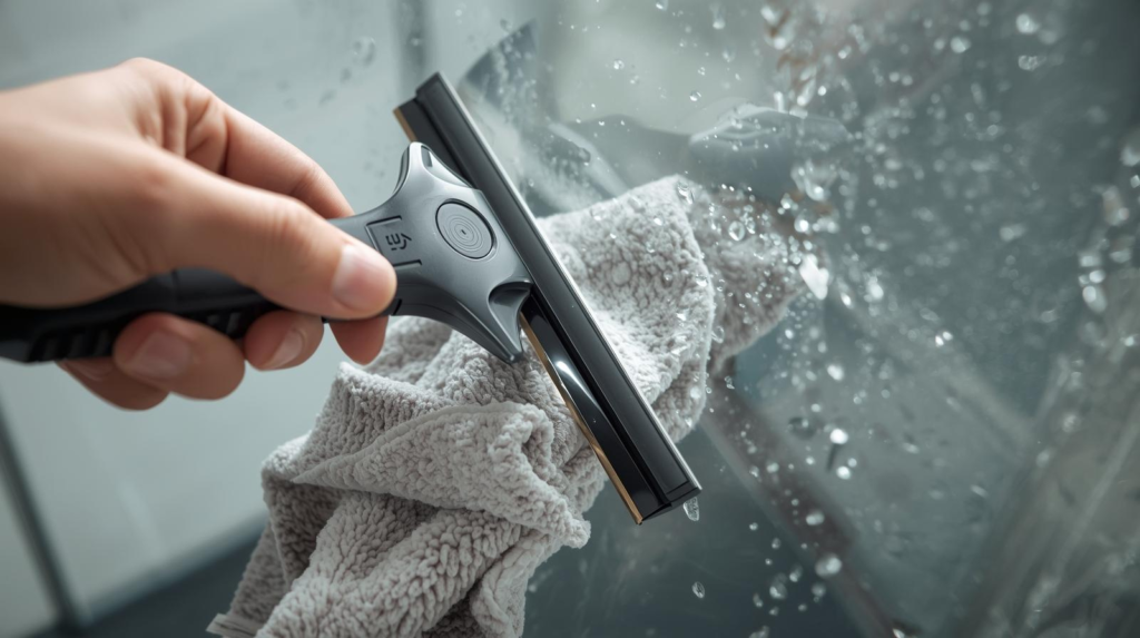 - Squeegee top to bottom, then wipe edges with a microfiber cloth.