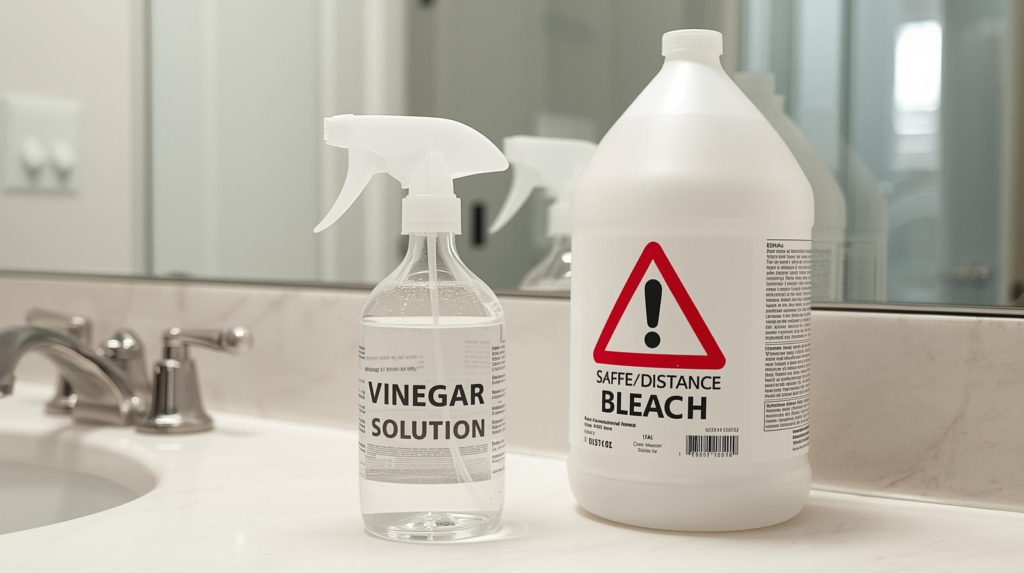 Safety note: Do not use vinegar anywhere near bleach or a bleach-based product—both the CDC and the Washington State Department of Health warn that mixing bleach with acids can release dangerous gas.