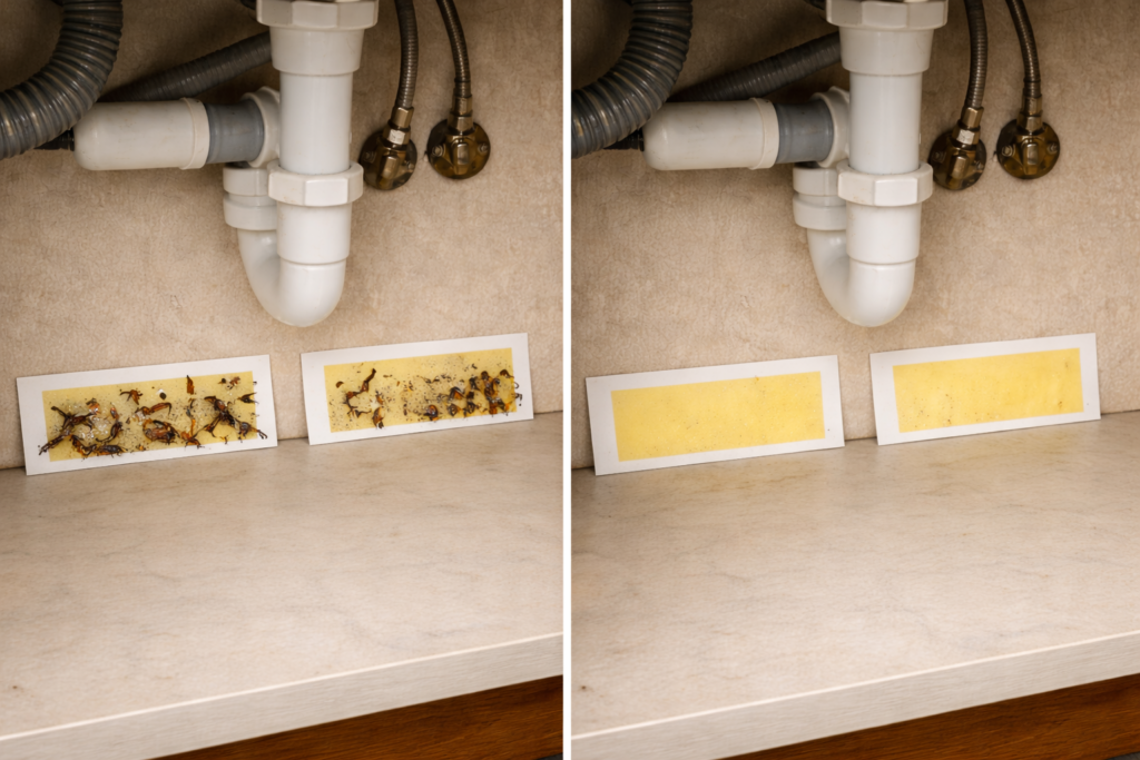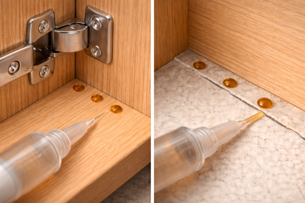 - Put small placements (think pea-sized or smaller) in many locations close to where traps show activity—cracks, crevices, hinges, under the sink lip, behind appliances. (NC State Extension)