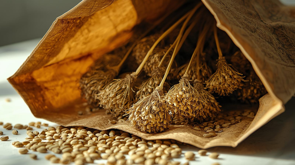 • Seeds are harvested as the umbels mature and dry; many guides describe cutting seed heads when seeds turn tan to brown, then drying them in a paper bag so seeds drop cleanly. (University of Minnesota Extension)