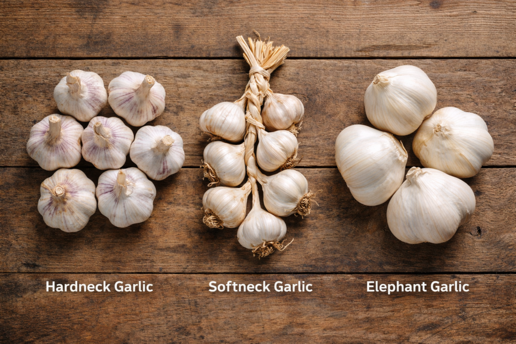 - Hardneck: produces a flower stalk (“scape”) and often has fewer, larger cloves; tends to be more cold-hardy but usually stores for a shorter time. (University of Minnesota Extension)