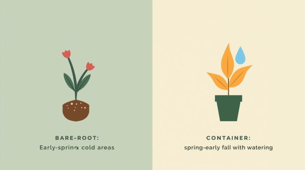 - Bare-root roses are typically planted while dormant (often early spring in colder regions), while container roses can be planted through the growing season if you can keep up with watering. (MU Extension)