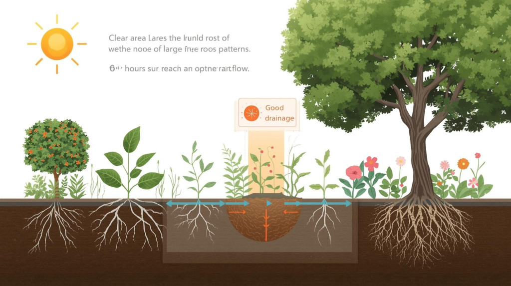 - Room and airflow: avoid crowding next to trees/shrubs that compete for water and nutrients. (Illinois Extension)