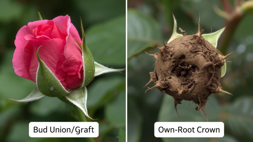 - Grafted rose: has a visible bud/graft union (a bump/knuckle). Planting depth matters for winter protection. (OSU Extension Service)