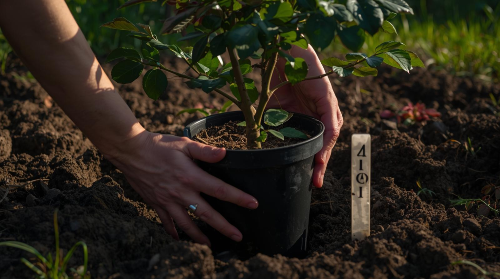 - Set the plant so the graft union ends up about 1–2 inches below soil level in cooler climates (many extension sources recommend slightly below). (NMSU Publications)