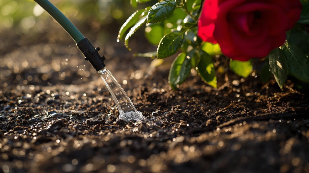 - Oregon State’s rose guide recommends deep watering that wets the full root ball, letting soil just barely dry out between waterings (often every few days, depending on weather and soil). (OSU Extension Service)