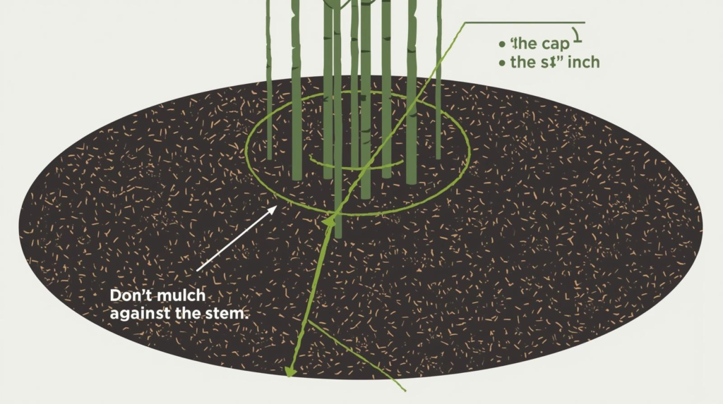 - Missouri Extension specifically recommends 2–3 inches and keeping mulch away from the base to form a watering basin. (MU Extension)