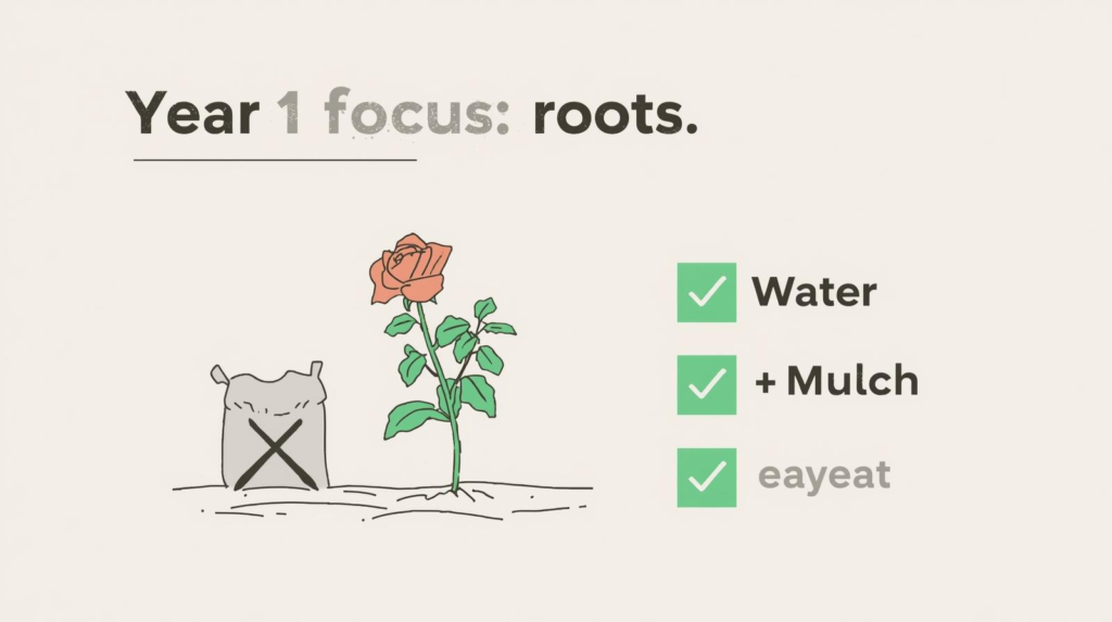 Step 7: Mulch the right way (this keeps new roses from struggling)