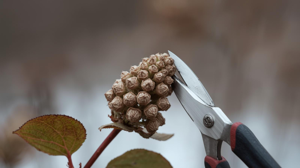 - Consider leaving spent mophead blooms on over winter for some bud protection, as recommended by the RHS deadheading guidance and discussed in the UMD Extension deadheading notes.