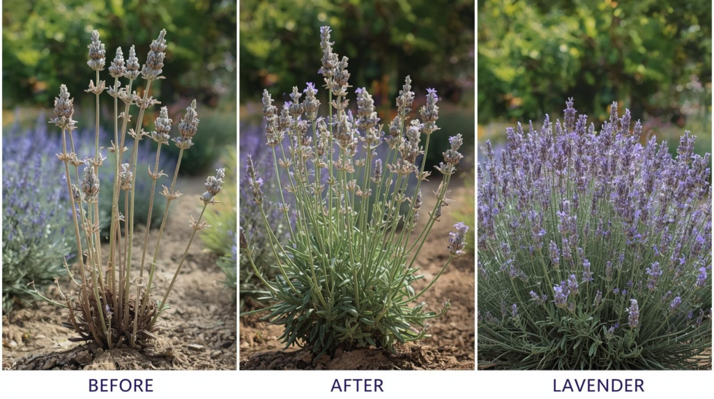 Tip: If your plant is huge, plan to reduce it over 2–3 seasons rather than “fixing” it in one aggressive cut. That’s safer because lavender struggles to regrow from old wood. (RHS)