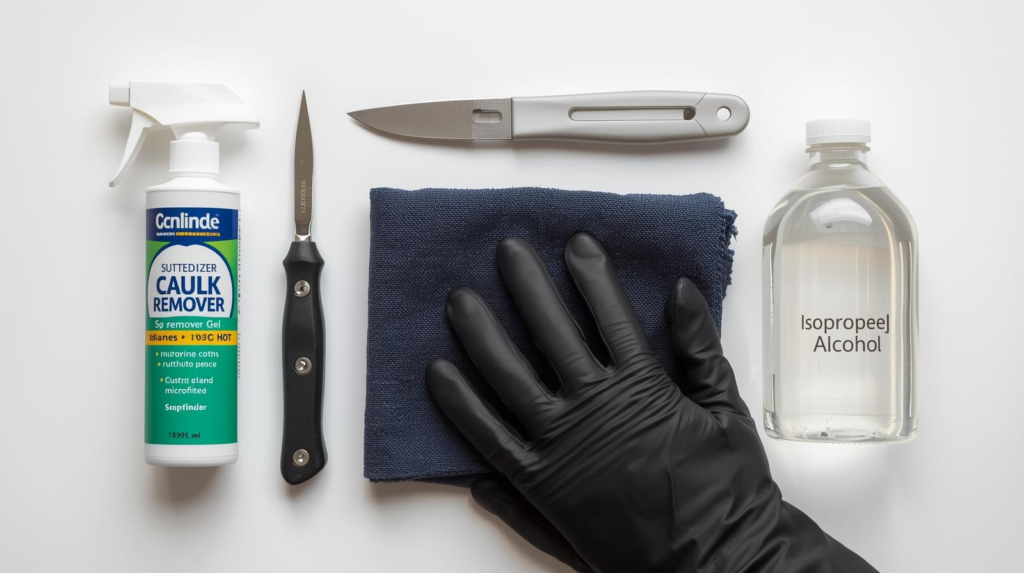 To remove caulk cleanly: score the edges, peel off strips, soften if needed, scrape residue, then wipe with isopropyl alcohol—a method laid out in DAP’s caulk removal guide. For cured silicone residue, follow surface-specific guidance like the one in the GE silicone sealant datasheet (including when mineral spirits is appropriate and when it’s not), and if you use bleach for mildew, follow EPA’s bleach safety warning and WA DOH’s mixing hazards.