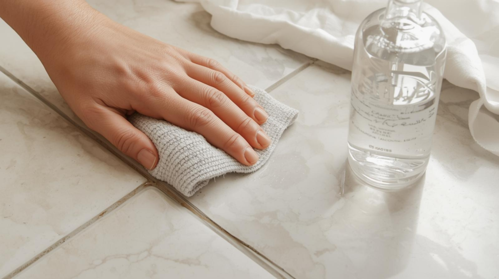 Even after the bead is gone, a thin residue can remain and interfere with adhesion. DAP specifically recommends scraping residue with a no-scratch pad and then wiping with isopropyl rubbing alcohol, and GE also emphasizes removing contaminants (old sealant, oils, soap residue) in its surface preparation section.