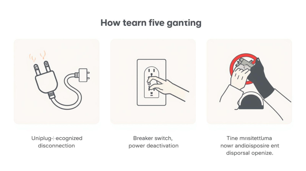 - Turn the disposal switch OFF and cut power by unplugging it or switching off the breaker, as recommended in Home Depot’s guide and implied in InSinkErator’s jam instructions (“switch off” and don’t reach in).