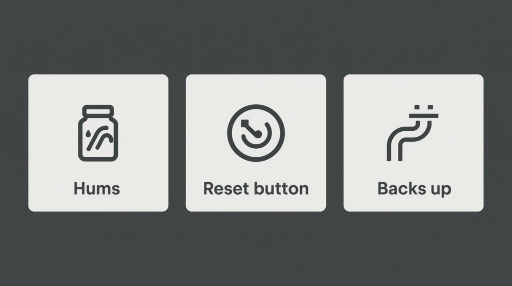 - Silent (no sound at all): could be tripped overload/reset or no power—resetting is a standard step after clearing a jam, as described in many disposal operating/troubleshooting materials (start with the manufacturer steps such as InSinkErator’s jam guidance).