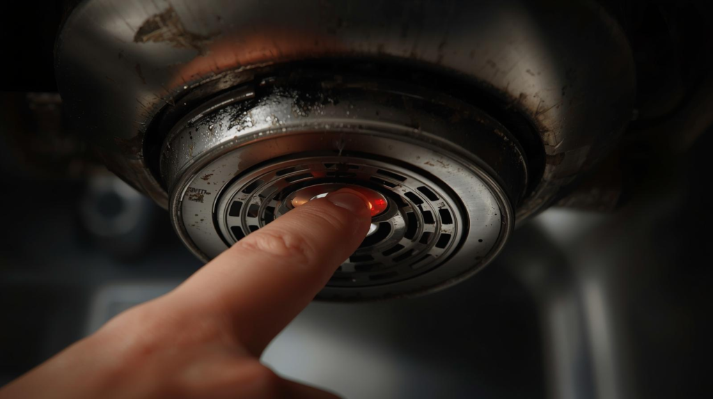 - Press the reset/overload button (typically on the bottom of the unit), then restore power and test with running water—this “clear jam → reset → test” flow is consistent with standard troubleshooting like Home Depot’s guide and manufacturer troubleshooting such as InSinkErator’s jam-fix steps.