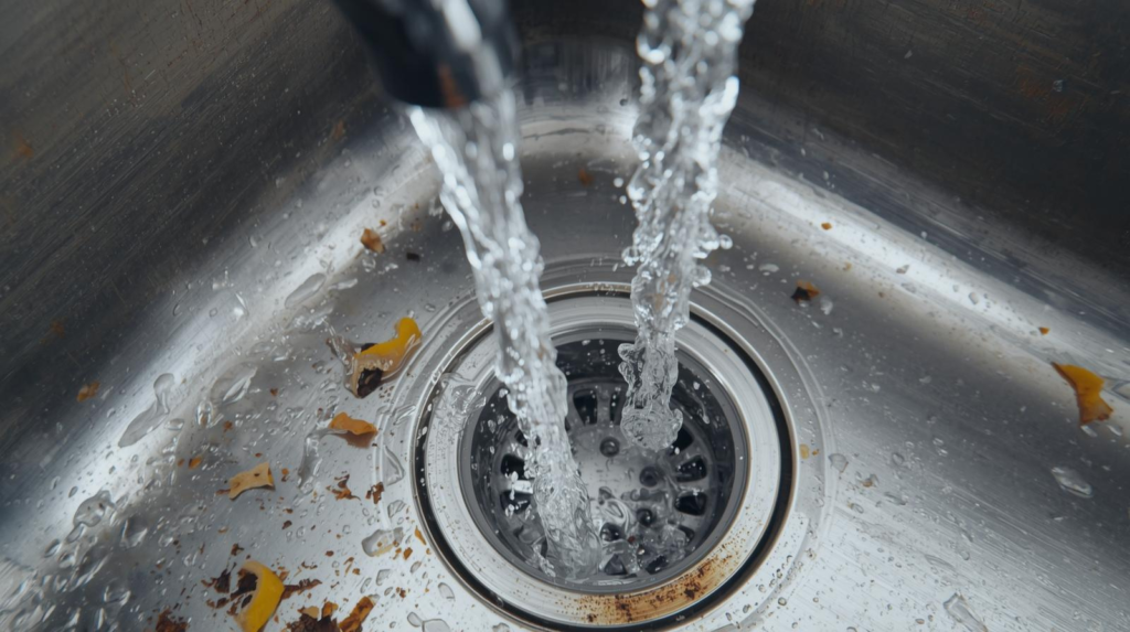 - Run a moderate stream of cold water before and during grinding, then keep it running briefly after to move particles through the drain line, as described in InSinkErator’s usage tips and the InSinkErator operating instructions.