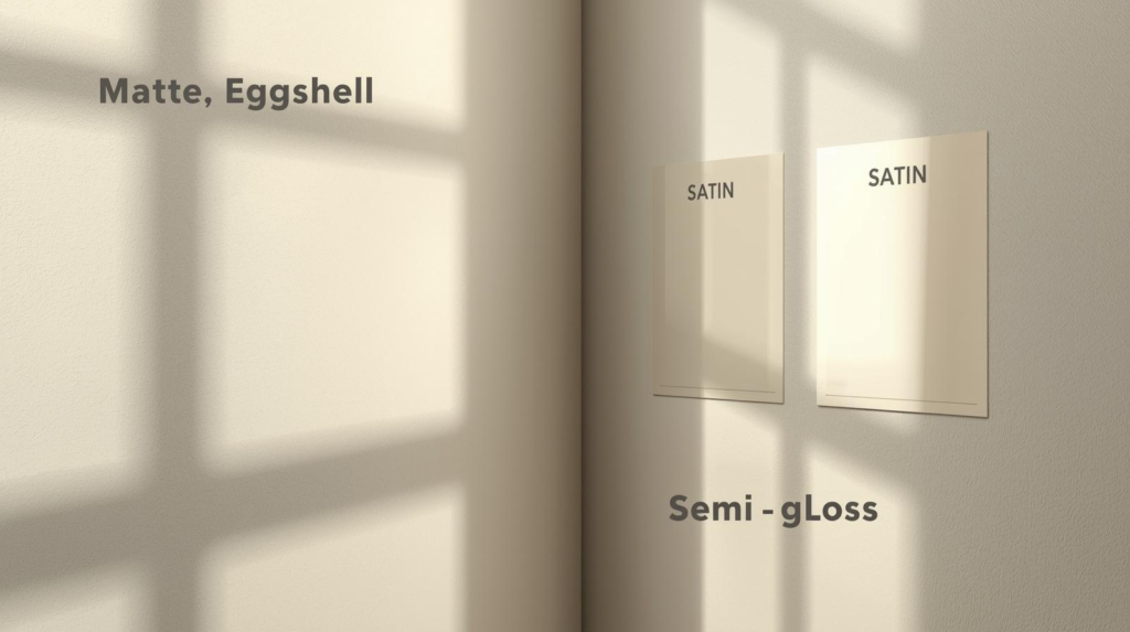 • Satin: more shine, generally easier to scrub clean, often preferred for high-traffic or moisture-prone areas